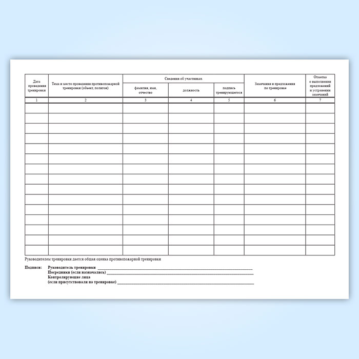 Журнал учета противопожарных тренировок имеет графы: