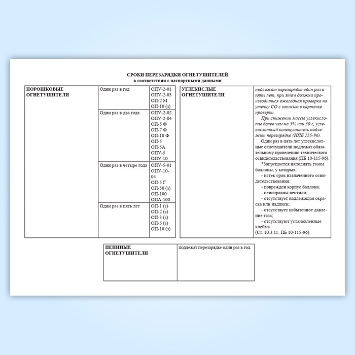 Согласно НПБ 166-97 Пожарная техника. Огнетушители. Требования к эксплуатации