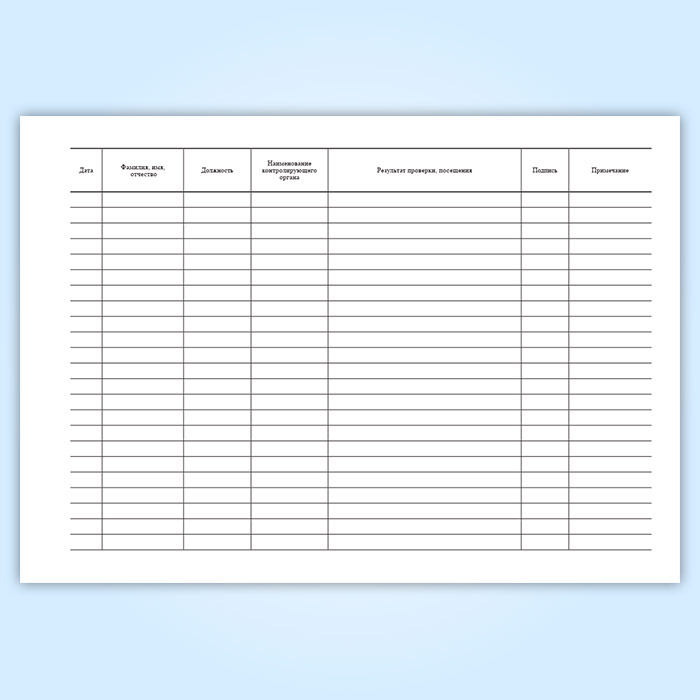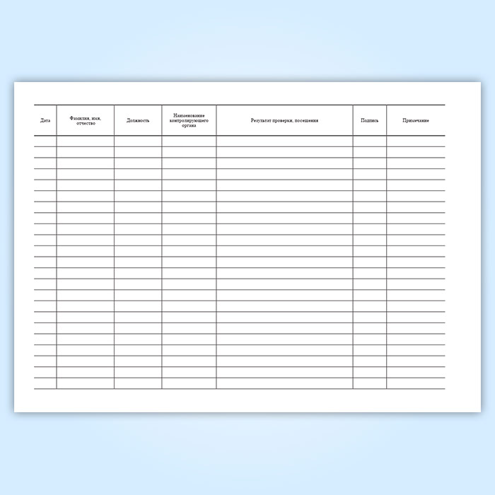 Журнал посещения должностными лицами содержит графы для заполнения:
