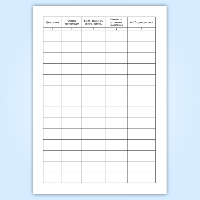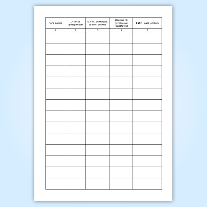 Журнал для записей проверяющих лиц имеет графы: