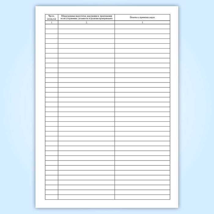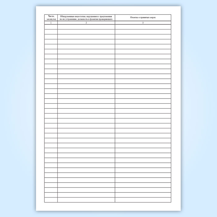 В нем проверяющее лицо фиксирует обнаруженные недостатки, нарушения работы торгового предприятия и предложения по их устранению, а руководитель (собственник) торгового объекта вносит информацию о принятых мерах.