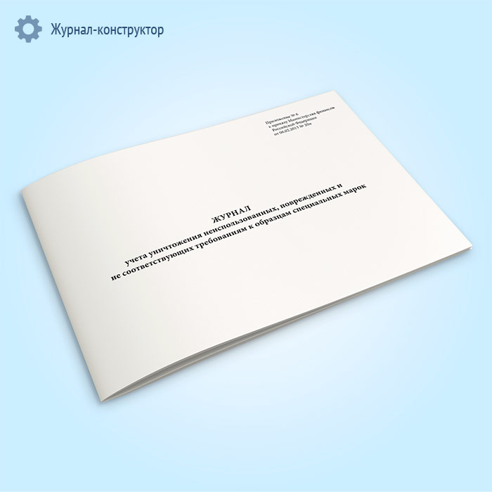 Журнал учета уничтожения неиспользованных, поврежденных и не соответствующих требованиям к образцам специальных марок