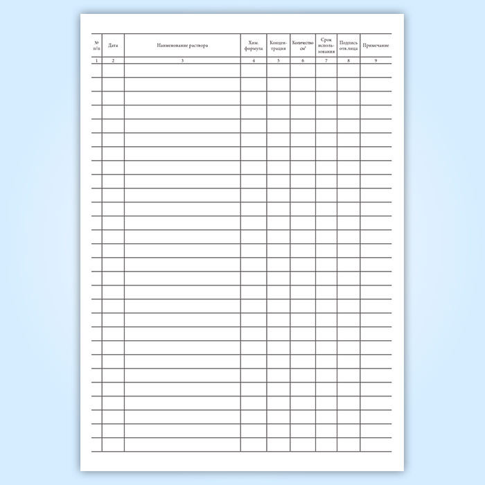 Для регистрации приготовления химических реактивов используют специальный журнал, в котором основные сведения о приготовленном растворе заверяются подписью ответственного.