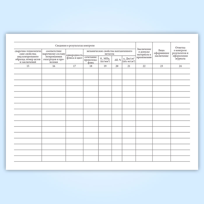 - сварочно-технологические свойства; вид контрольного образца; номер актов и заключений