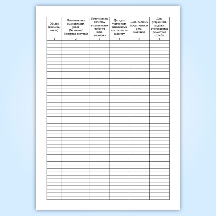 Журнал регистрации претензий по выполненным ремонтным работам имеет графы: