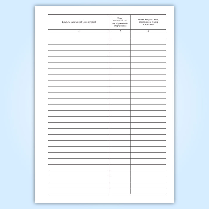 Все полученные результаты (даты осмотров, типы неисправностей и записи об их устранении) заносят в Журнал учета испытаний газопламенной аппаратуры. Журнал способствует упорядочиванию учета.