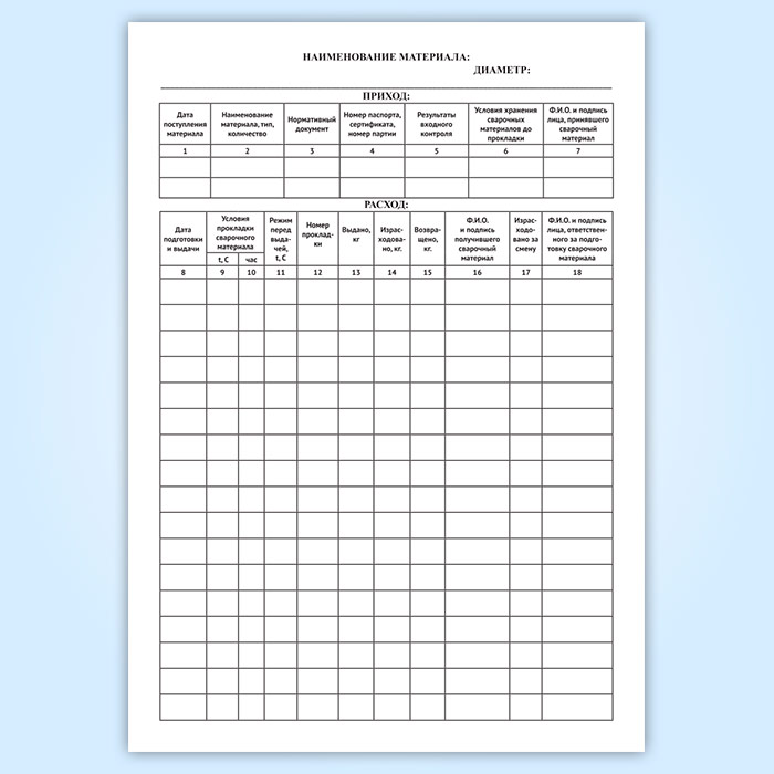 Подготовка и выдача сварочных материалов отражается в журнале с указанием наименования, прихода и расхода материала.