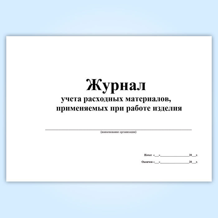 Журнал учета расходных материалов, применяемые при работе изделия имеет графы: