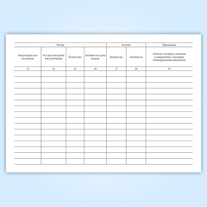 Приходно-расходный журнал по учету радиоактивных веществ имеет графы: