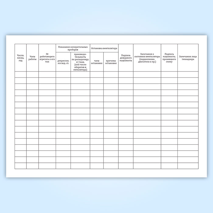 Графы журнала учета работы вентилятора: