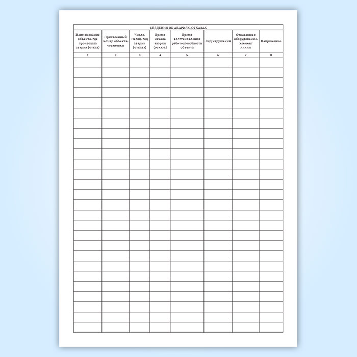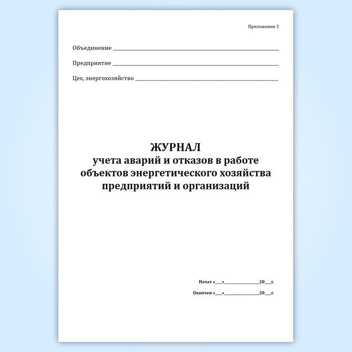 Журнал учета аварий и отказов в работе объектов энергетического хозяйства предприятий и организаций