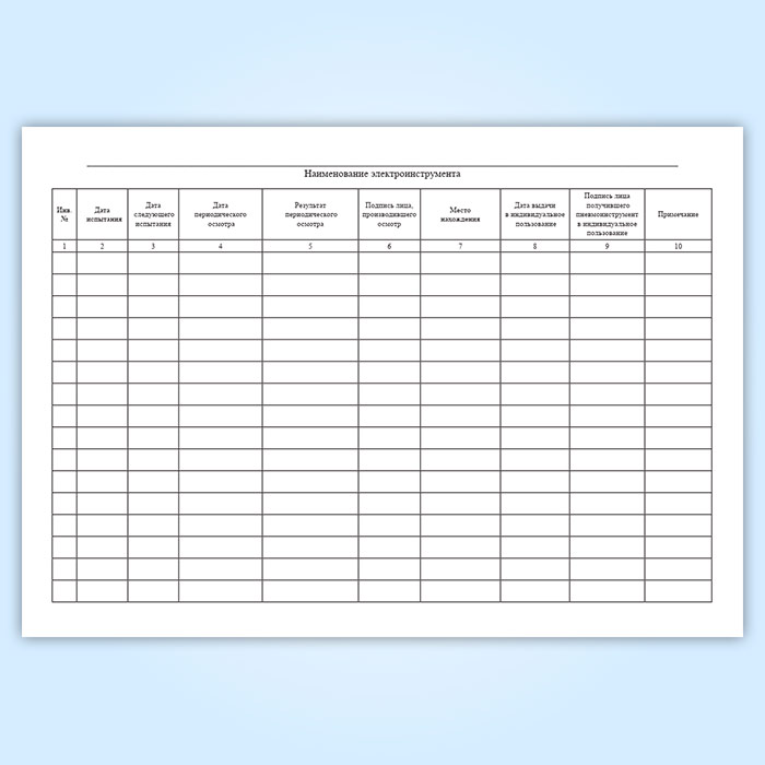 Журнал учета выдачи пневмоинструмента имеет графы: