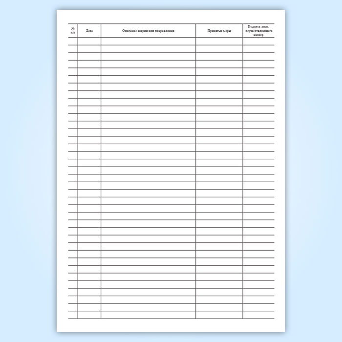 Ведомость аварий и повреждений содержит графы для заполнения: