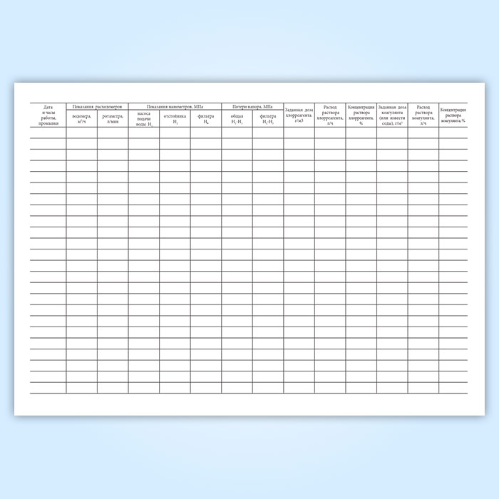 - Дата и часы работы, промывки