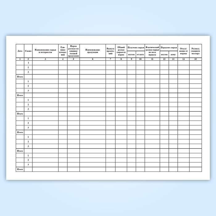 Журнал учета расхода сырья и материалов по цеху (объекту)