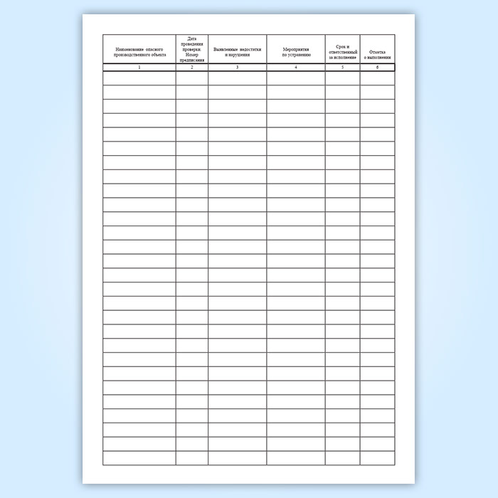 Журнал учета предписаний лица, ответственного за организацию производственного контроля