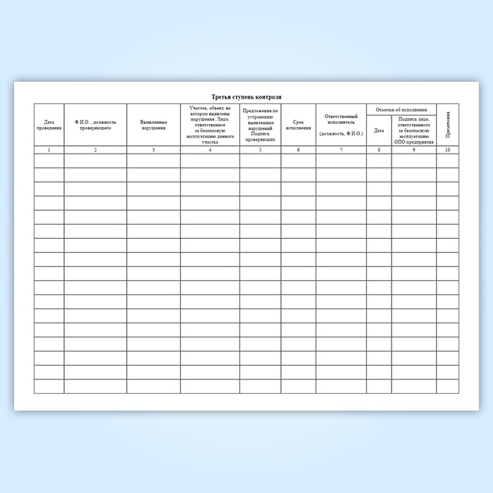 Журнал контроля за соблюдением требований промышленной безопасности. Третья ступень контроля имеет графы: