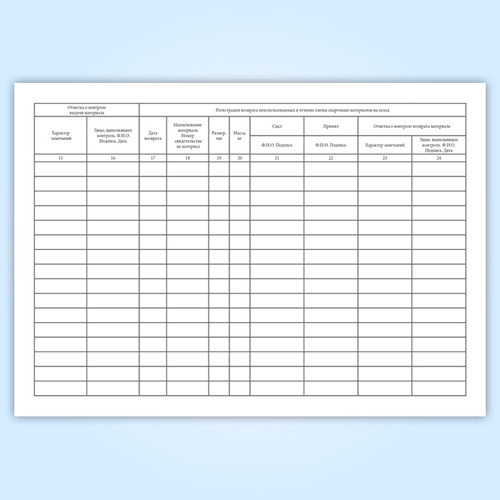 17-24. Регистрация возврата неиспользованных в течение смены сварочных материалов на склад