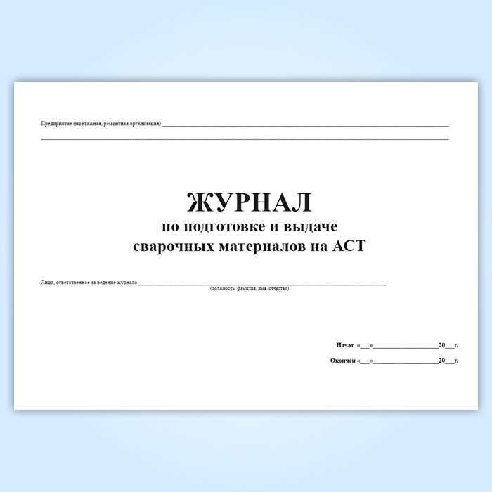 Журнал по подготовке и выдаче сварочных материалов на АСТ