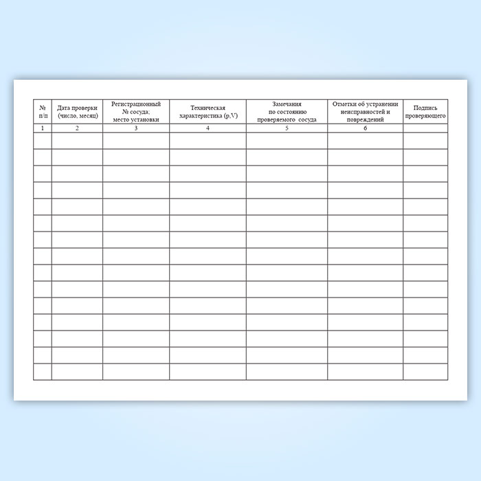 Журнал ответственного за исправное состояние и безопасное действие сосуда, работающего под давлением имеет графы: