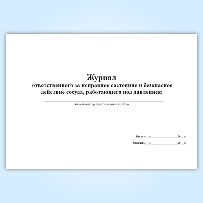 Журнал ответственного за исправное состояние и безопасное действие сосуда, работающего под давлением