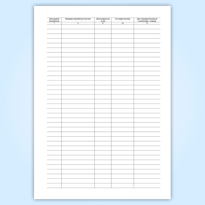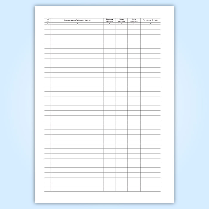 Для контроля за состоянием, количеством, наименования с объемом баллонов для учета на предприятиях ведут данный журнал.