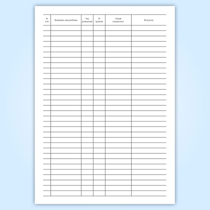 Журнал направления детей к узким специалистам по скрининг-анкетам