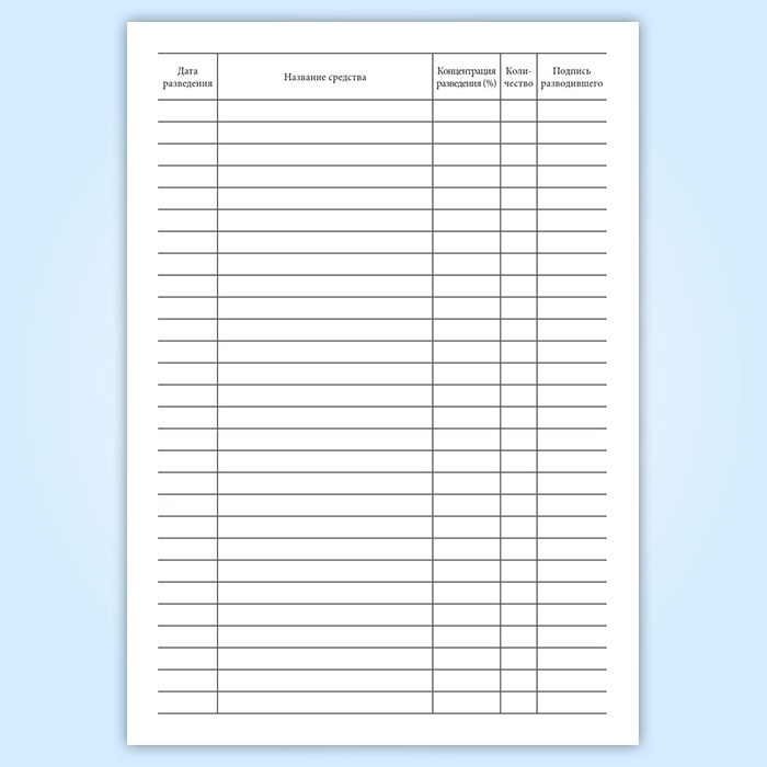 Журнал регистрации разведения моющих и дезинфицирующих средств