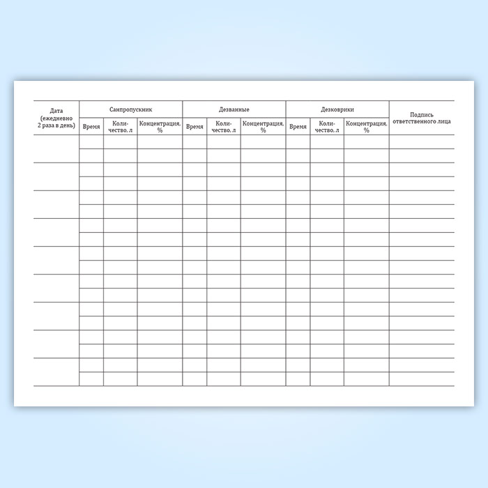 Журнал контроля замены дезсредства в санпропускнике, дезванных и дезковриках