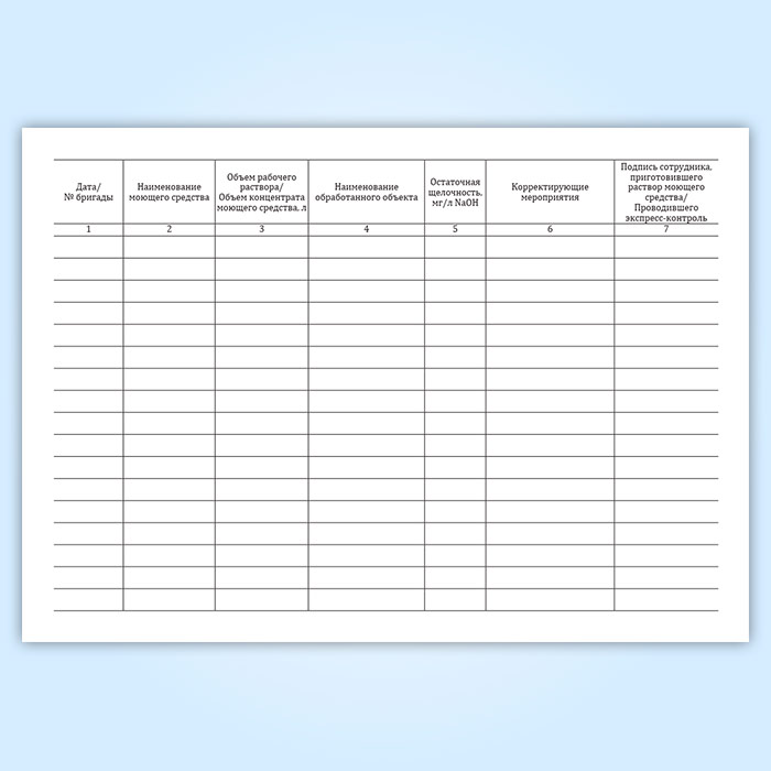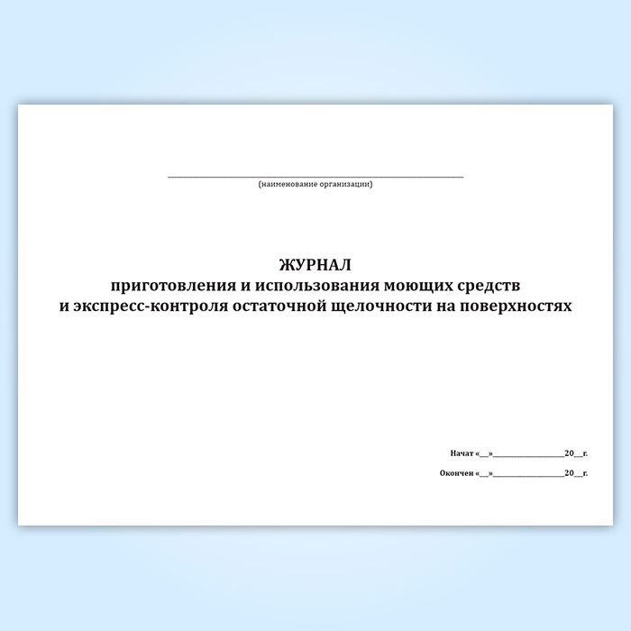 Для учета приготовления и использования моющих средств и экспресс-контроля остаточной щелочности на поверхностях применяют журнал, в котором указывают наименование моющего средства и обработанного объекта.