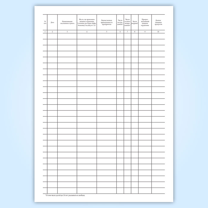 Журнал регистрации пищевых отравлений за год (форма 360/у)