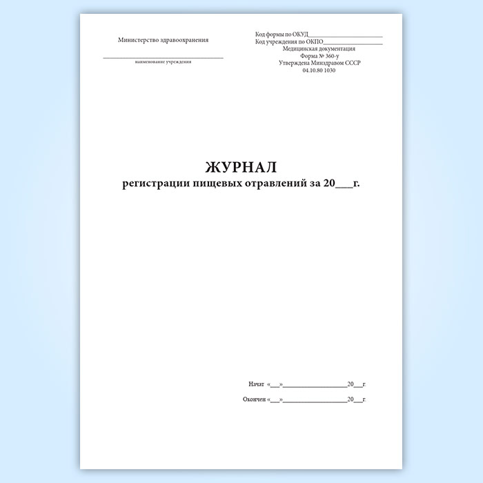 Форма журнала регистрации пищевых отравлений за год 360/у, утверждена Приказом Минздрава СССР №1030 «Об утверждении форм первичной медицинской документации учреждений здравоохранения» от 4 октября 1980 г..