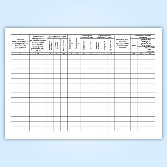 14. Причина невыполнения или несвоевременного выполнения дезинфекции