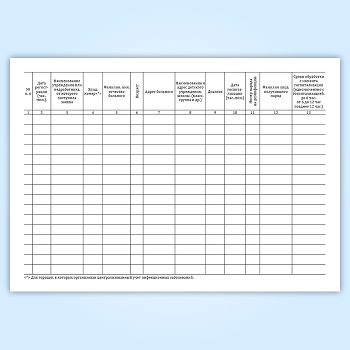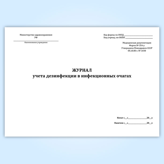 Журнал учета дезинфекции в инфекционных очагах (354/у), утвержден Приказом Минздрава СССР №1030 «Об утверждении форм первичной медицинской документации учреждений здравоохранения» от 4 октября 1980 г.