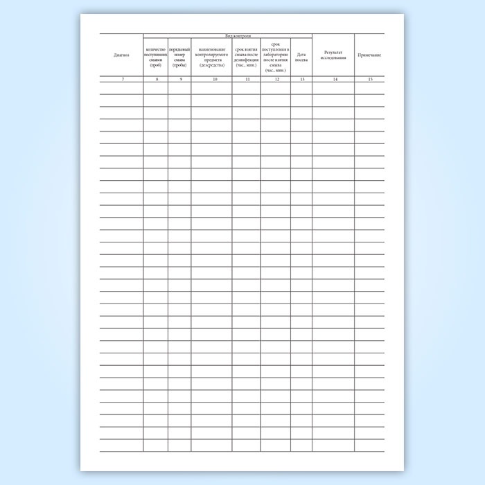 Журнал регистрации лабораторного контроля качества дезинфекции (форма 359/у)