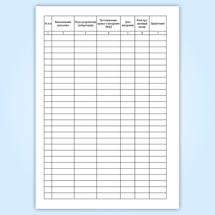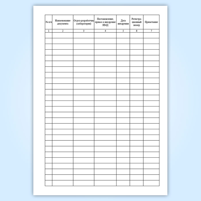 Журнал регистрации нормативно-методических документов, внедренных госсанэпидслужбой