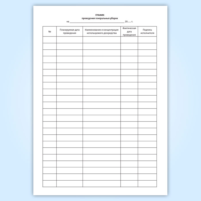 Журнал проведения генеральных уборок