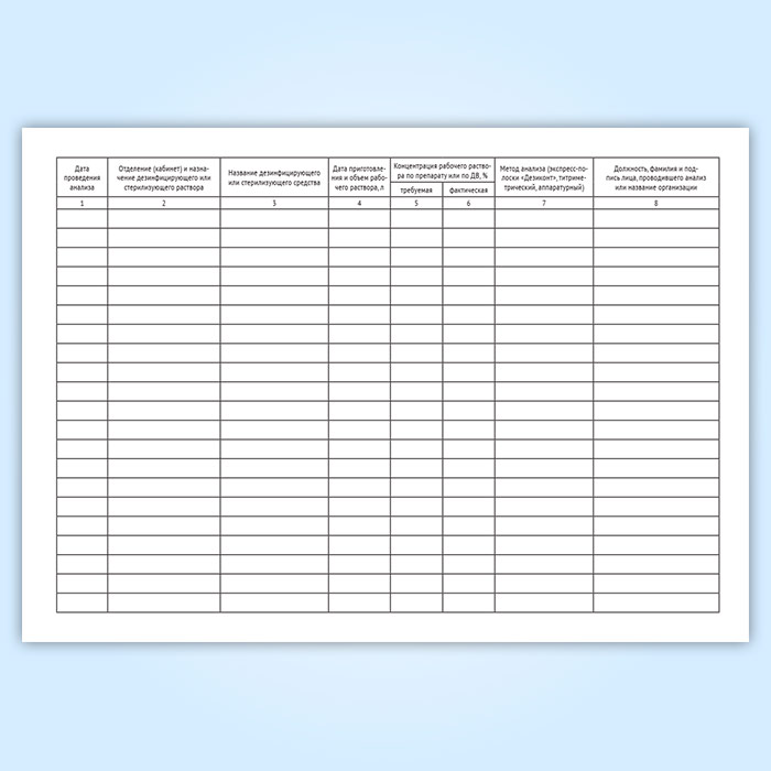 Журнал контроля концентрации рабочих растворов дезинфицирующих и стерилизующих средств