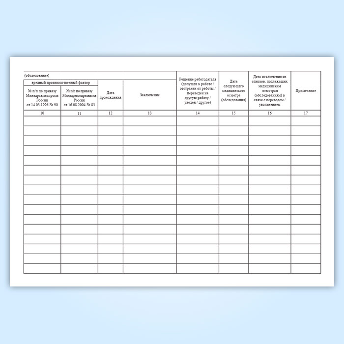 Журнал учета результатов прохождения медицинских осмотров сотрудников
