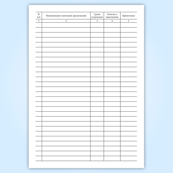 Журнал замечаний и предложений представителей вышестоящих организаций (форма ПС-13)