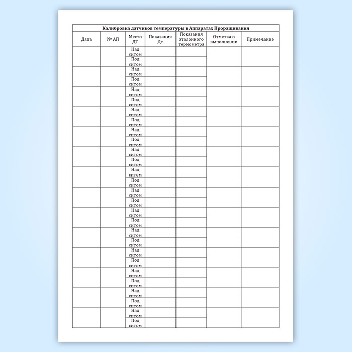 Журнал калибровки датчиков температуры в аппаратах проращивания