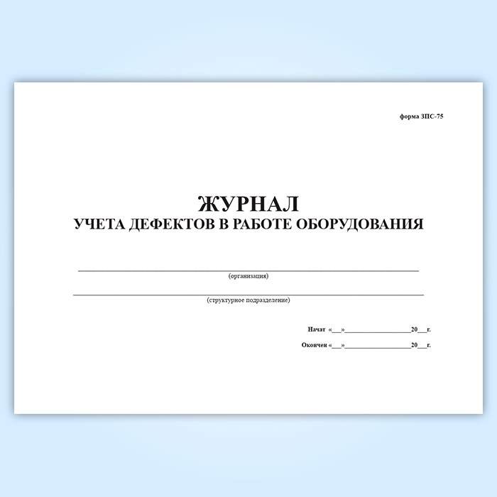Журнал учета дефектов в работе оборудования (форма ЗПС-75)