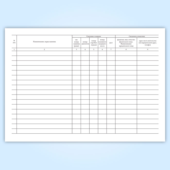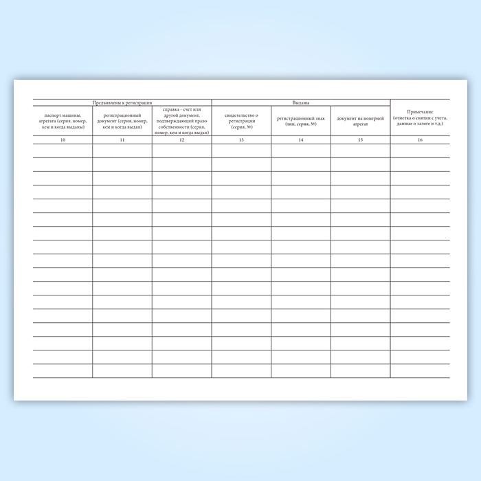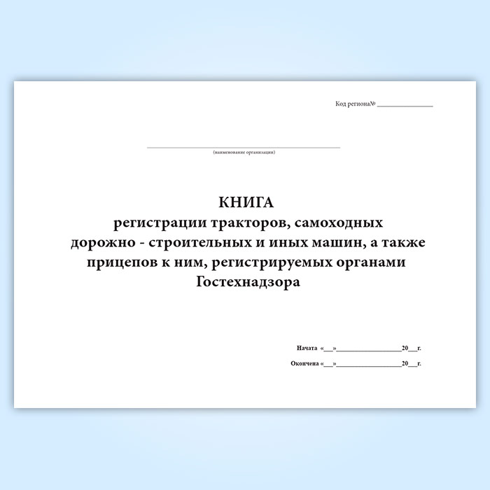Форма книги регистрации тракторов, самоходных дорожно-строительных и иных машин, а также прицепов к ним, регистрируемых органами Гостехнадзора соответствует Приложению 6 к Правилам государственной регистрации машин органами Гостехнадзора