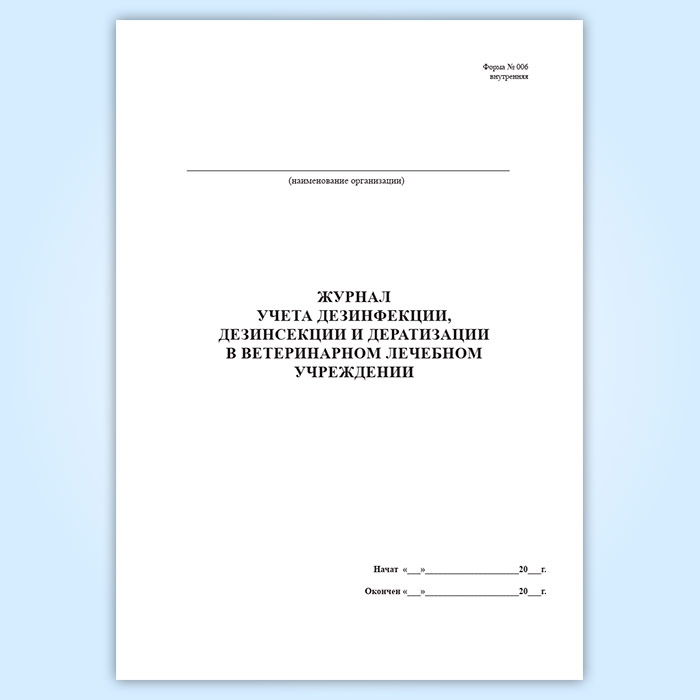 Журнал учета дезинфекции ветеринарного лечебного подразделения (форма № 006 вн.)
