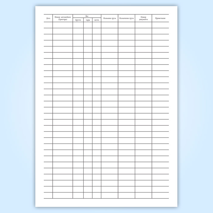 Журнал весовщика (приема грузов)