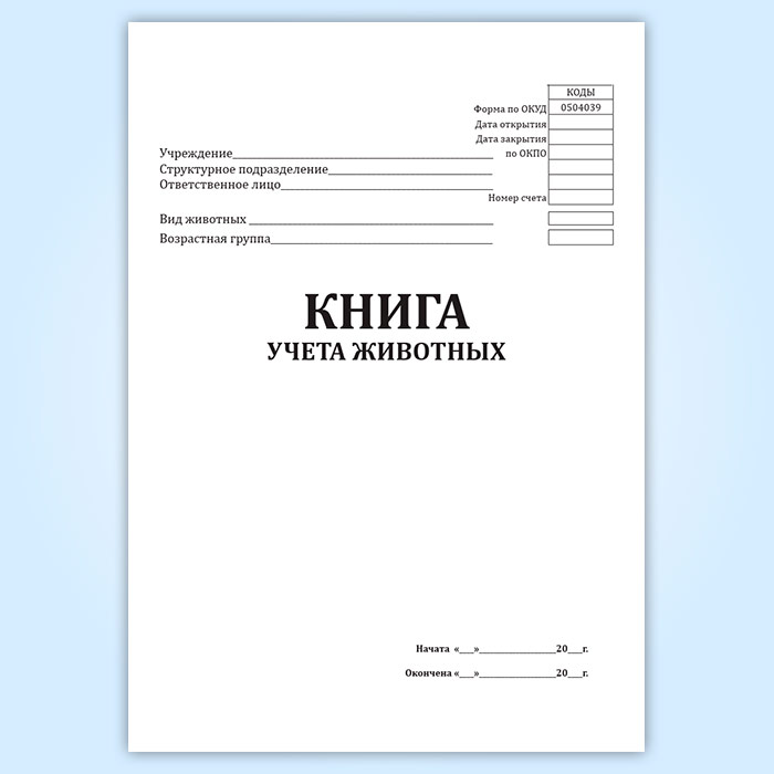 Книга учета животных (форма 0504039)