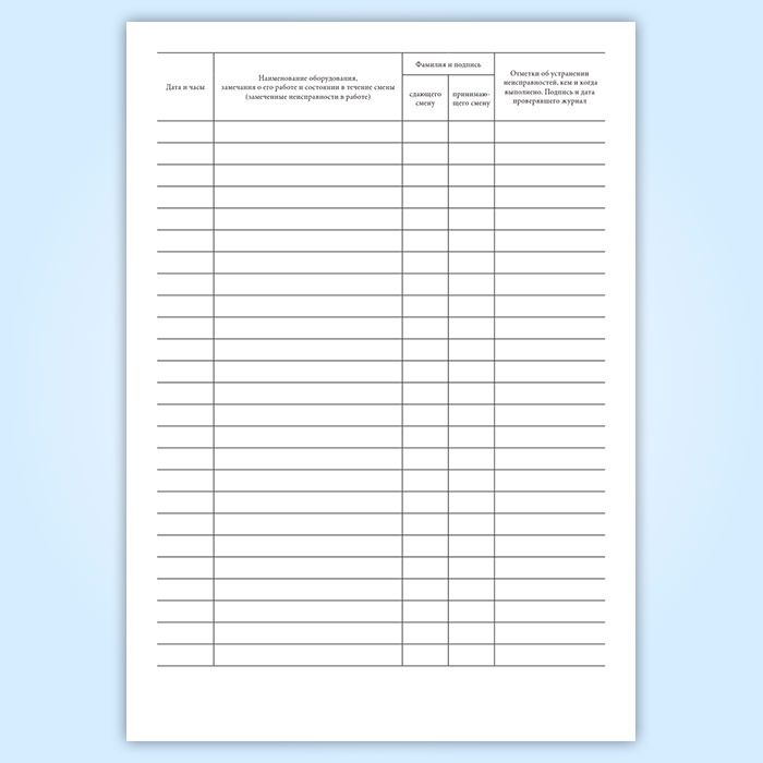 - Наименование оборудования, замечания о его работе и состоянии в течение смены