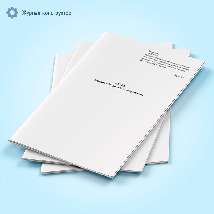 Форма журнала передачи оборудования между сменами утверждена Госагропромом СССР " ВСН 39-87. Положение о планово-предупредительном ремонте и эксплуатации оборудования промышленной базы предприятий строительной индустрии в системе Госагропрома СССР. Часть II" .