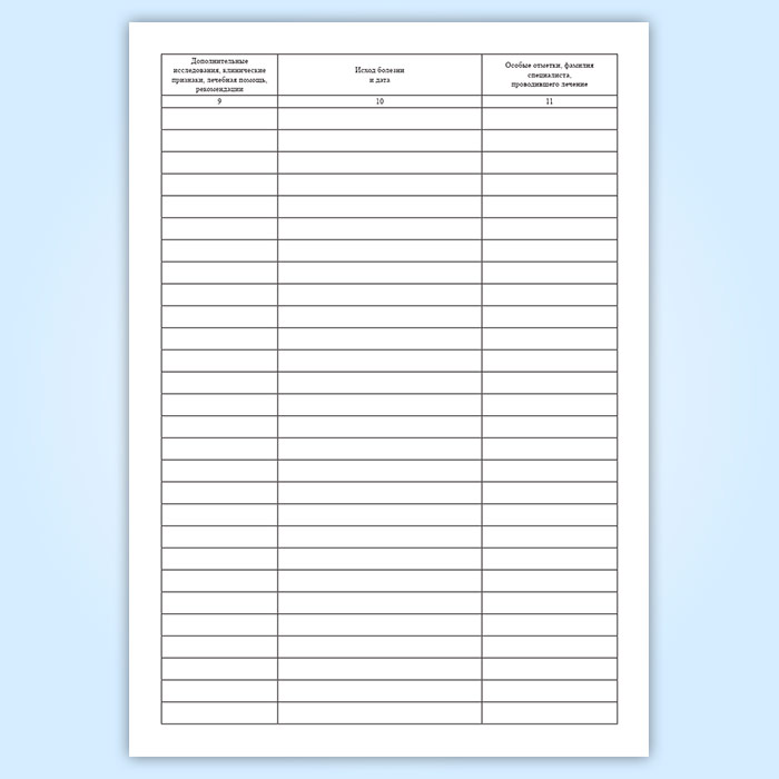 11. Особые отметки, фамилия специалиста, проводившего лечение