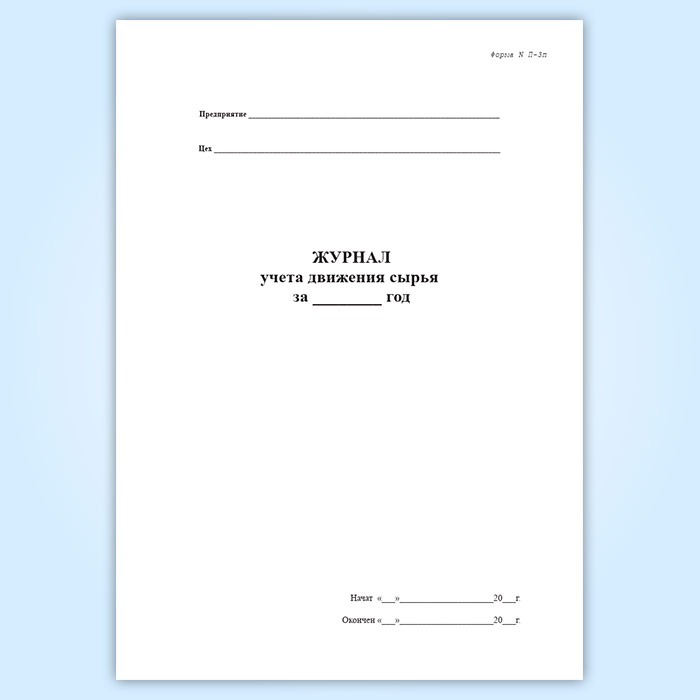 Журнал учета движения сырья (форма № П-3п)
